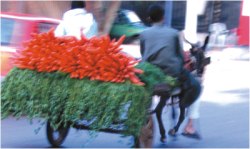 cruise back, a lonely donkey cart trundles along the dusty road,