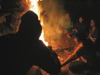 We build a campfire. We collect dry twigs, douse them with kerosene and torch them. The flame leaps up into the air. A strange light dances on the forest trees; something beyond light and shade; something mysteriously gloomy; something mesmerising. Then you know why insects hurtle into flames. We stare into the light without thinking anything.