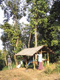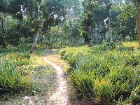 Several hundred yards inside the forest area we come across an orchard of jackfruit and lichi trees. The ground is spread smooth like a golf course. Just beside it is a pineapple orchard. The prickly leaves spring up threateningly. It is a beautiful place to rest and feel the beauty of the forest.