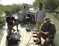 location > nijhum dwip category > adventure A soft afternoon glimmered on Nijhum Dwip as we silently rowed down a canal. We all sat in silence, our eyes and ears intent on hearing every rustle of the nature. It's a surreal situation, our boats had to go under thickets hunched over the canal, all we could hear were birds chirping and the thickets brushing against the boat. On both sides of the canal are forests of kewra. Our eyes and ears strained. The sky seen through the bush looked too blue to be true. The boatman suddenly let go of the oar and the boat stopped, he silently pointed his finger towards the forest. For sometime, we could not see her, then we could make out the figure of the doe -- alert and agile -- its tail shaking in excitement and ears pricked to pick any noise. I looked straight into the doe's eyes and held her there. She seemed amused, I tried to assure her that we meant no harm, but the message did not get across. She softly beat her hoofs on the ground, turned around and then darted into the forest as our cameras clicked.
