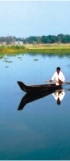But then it was not quite a channel. Often the distinction between the channel and the marshland was lost as water was still logged there. The glassy water reflected so quiet on this winter morning, the whole world reflected with it. And then we lost the sense of time and space, because the deep blue sky, the hill range, the trees, the forests -- everything was reflected on the water, and we were lost in a reflected glassy world turned upside down.