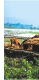We could see the farmers prepare the land and cast paddy seeds, working their way forward in knee-deep mud -- some fields had the cover of light green slender seedlings. They could be seen either way -- in their correct position or upside down -- depending on which way you want to see this misty morning. They looked more beautiful than the catwalk models. Scarecrows stood desolate and foolish on the fields which were yet to bear seedlings; in their tattered garb they looked no poorly dressed than the men and women working in the field; and purposeless on this mountain surrounding -- who to scare off and why?