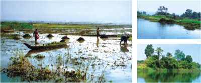 The scene changed now. Kasalang had narrowed down from here and the landscape became so unfamiliar. The depth of the river also slowly decreased with the narrowing width until it became just a channel not more than 30 feet wide. The rest of river was just silted up swamp. This is what happens to Kasalang every winter, it trickles down to a thin thread. The rest becomes crop land as it had now.
