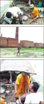 But I was desperate, I always suffer from the idea that the world is going to run short of food very soon and I will starve. I kept repeating the same statement 'Let's start cooking' every five minutes. Finally Morshed budged and opened a polythene bag to produce two turkey-sized chickens and about 5kg beef. We bellowed to greet the sight. "Javer," Morshed yelled. "Start food preparation." To our glee Javer set down to cleaning the chickens. But the hope for a decent food did not last long as suddenly somebody screamed: "We are sinking." In our gust of fun and frolicking, we did not notice that the boat was slowly sinking as water gushed inside through a whole. The brown muddy water was sloshing under the wooden floor and soon it brimmed over to wet the mat. Suddenly, the Ashar Tori (Boat of Hope) turned into a doomed Titanic. As hope vanished fast, we were thinking of jumping into water and so slipped into life jackets. But Morshed kept his cool, or least he tried to show some courage. "Javer," he screamed. "Irrigate the boat. Pump out the water. Quick." Soon, we all were trying to scoop up water with saucepans and jugs and whatever we had and throw it back into the river. But the task became even more difficult as the wooden floor started snapping because of the great flurry of movement. Someone's leg went right through the floor to hit the hull. Still we did not let up and half an hour later, the boat was again floating comfortably. And as soon as the imminent danger was over I went back to my original nagging "Let's start cooking". But Javer was too busy irrigating the boat. And Morshed was looking yonder in a philosophical mood. Others, it seemed, had stones for breakfast. After a few more minutes of non-stop nagging, I remembered the maxim 'self help is the best help' and so started cleaning the chickens and mixing spices. Finally, Morshed seemed to have embedded with some pity for me and ordered: "Javer, fire the stove." A great amount of activities followed the command. Javer started pumping up the stove cylinder for a while and then put a match to the hissing gas. A wobbly fire started and everybody jumped up in excitement. The meat curry pan was placed n the stove. "It will take years to cook at this rate," I complained to the deaf years of Morshed who was by then singing and dancing with others to the beat of the Dhol. The boat rocked violently from side to side but nobody seemed to care any more.