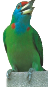 This is the most colourful of our barbets. It is most common in the Shal and Semi-Evergreen forests as well as in the north, west and south-western Bangladesh. Not found in and around Dhaka. In the North Bengal the mid-day silence of hot summer day is often broken by the loud and repetitive call of the Blue-throated Barbet. It is basically a grass green bird with prominent blue throat, breast and sides of the face and head. The head being tri-coloured with crimson nape, black band ahead of it and on top of the head that is being followed by a narrow white one and the forehead is crimson again. There is a crimson blotch at the side of the breast. The bill is very heavy, and the head and neck regions are bulky. The bill is bluish black and its bases are encircled by black bristles. Both sexes appear similar in size and colour although the male could be slightly bigger than the female. Its plumage merges with the foliage through which it moves. It lives in small loose flock of few birds but could be found in dozens when many from the neighbourhood congregate to feed on ripening figs, banyan, Debdaru, Boulagota, Jamun and other soft fleshy fruits. In addition to fruits and berries it can also feed on insects. This barbet produces a loud Kutroo-kutroo-kutroo from a perch and could be heard from far off places. It is more often heard than seen. It drills out a hollow in a tree and keep using the same hole for nesting year after year. It can also recommission hole-nests of other birds such as the woodpeckers and parrots. Actual size± 23 cm. © thedailystar.net 2006 |