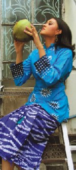 Let's now look at Malaysia's batik. It has always been shadowed by Indonesian batik until the sixties when slowly the Malaysian batik industry has managed to distance itself from the early Javanese foundations and develop a style of its own. Recently Malaysia's First Lady Datin Paduka Seri Endon Mahmood has given the batik industry a thrust and has re-launched it in a fun way, with the main focus being on the fashion industry. So much so that her endeavour has managed to take Malaysian designers using batik to Milan fashion week.