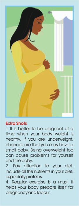Spotlight The growing baby gets all its nourishment from its mother. If the mother is lacking in any nutrients her baby might lack them too. In the first few weeks her appetite may fall dramatically and she may not feel like eating proper meals, especially if she suffers from nausea and sickness. During the middle part of her pregnancy, her appetite may be the same as before while towards the end of her pregnancy, her appetite will probably increase. The best and wise way to follow would be to eat when she feels hungry. It's important to remember that the developing baby needs regular sustenance, so try not to miss meals. Even if you're not feeling hungry, chances are your baby is, so it's wise to eat every four hours. Tiredness can be a major problem at this stage of pregnancy, and getting up in the morning even to go to work may be almost impossible. One may feel nauseous too, and the last thing on the mind is a healthy breakfast. However, it important for you and your growing baby that you don't skip breakfast altogether. Here are some tried and tested tips to deal with nausea to help you: Keep plain biscuits or toast biscuit or crackers by your bed and nibble one or two before getting up When you feel sick, sip a ginger-based drink, such as ginger ale or a cup of hot water with a slice of fresh ginger Eat small, bland snacks between meals If the smell of food makes you feel worse, ask someone else to cook, or make and freeze extra portions of meals when you feel better. Your baby needs a good supply of vitamin D and calcium to help make healthy teeth and bones. Fish is the main dietary source of Vitamin D. Eggs are a good source too. Moderate exposure to the sun also generates Vitamin D. Calcium is important not only for nerve transmission but also muscle contraction, healthy teeth and bones. Most women nineteen and older - including those who are pregnant-often don't get the daily 1000 mg of calcium that's recommended. Make sure that you are eating plenty of calcium-rich foods, especially dairy foods and canned fish with bones. Almonds, cheese, chickpeas, milk, tofu, spinach, yogurt, dark green vegetables, sesame seeds are also rich sources of calcium. By around week 14, your baby's thyroid gland starts to function, and starts to make its own hormones. The thyroid gland needs iodine to work properly. Seafood such as fish, prawns, salmon, sardines, seaweed and trout are good sources of iodine. The body needs more protein at this time. Iron is also very important and good sources of iron include pulses, bread, green vegetables, fortified breakfast cereals red meat, poultry, salmon, eggs, dried beans and peas, dried fruits, leafy green vegetables, and iron-fortified breakfast cereals. A pregnant woman needs 27 to 30 mg of iron every day. Iron is needed to make haemoglobin, the oxygen-carrying component of blood cells. A daily intake of vitamin C ensures better absorption of iron. Try to have some drink containing Vitamin C, such as a glass of fruit juice or any citrus fruit with iron-rich meals. You can also make yourself a glass of lemon sherbet or squeeze a little lemon in your meal. Avoid drinking tea with iron-rich foods as this reduces absorption. If the iron level in your blood is low, your doctor will advise you to take iron supplements. Without enough iron, the body can't make enough red blood cells and the body's tissues and organs won't get the oxygen they need to function properly. It's important to drink plenty of fluids as well, especially water. Blood volume increases dramatically during pregnancy, and drinking enough water each day can help prevent common problems such as dehydration and constipation. Intake of alcohol is strictly prohibited during pregnancy. Studies have linked alcohol consumption with various congenital anomalies of the new born. It is also wise to cut down on caffeine rich drinks. However, caffeine in moderate amounts poses no real harm to the baby. There are certain foods that one should avoid when pregnant. Avoid eating raw eggs and food containing raw or partially cooked eggs. Make sure you only eat meat that has been well-cooked. This is especially important with poultry and products made from minced meat. Always wash your hands after handling raw meat, and keep it separate from foods that are ready to eat. This is because raw meat contains bacteria that can cause food poisoning.