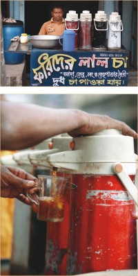 Cha ghor In ancient times, the cultivation and drinking of tea spread from China to Japan, Taiwan and Southeast Asia. Tea or chai in Cantonese was first tasted in the European continent in Lisbon, Portugal in the sixteenth century. This week, we trace the timelines of tea and explore our traditional cha ghor in our villages and sub-town cities. Tea is a drink made by steeping processed leaves, buds or twigs of a tea bush in hot water for a few minutes. There are four basic types of tea: black tea, oolong tea, green tea and white tea. The term 'herbal tea' usually refers to infusions of fruit or herbs such as rosehip tea and chamomile tea which contain no tea leaves. Tea is a natural source of caffeine, theophylline and so on and it has a cooling, slightly bitter and astringent taste. In Bangladesh, local tea stalls have an earthen, rustic look to them. In reality we have never opted for aesthetic enhancements for our tea stalls. They are normally located at railway or bus stations, near bazaars and factories or other areas of business.