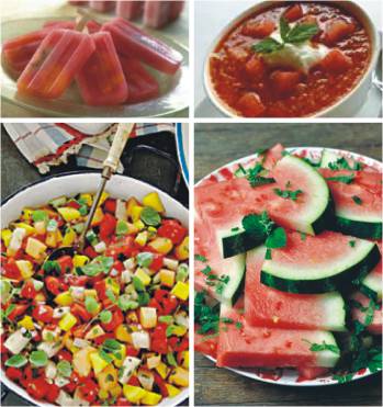 By Abdullah Tareq Watermelon seems to be in abundance this summer. You get it all year around nowadays, but at this time of the year it's everywhere. Not only is watermelon very refreshing but in this crazy heat, it helps your body re-hydrate. It is 92 per cent water and has high levels of vitamins A, C and B6. It also contains potassium, which is a mineral necessary for water balance. Here are a few recipes with watermelon. Watermelon gazpacho 10 servings Method: Tomato and watermelon salad 4 to 6 servings Method: Sweet, salty, and spicy watermelon refresher Method: Place red onion, coriander leaves, and mint in a large bowl. Dice watermelon and cantaloupe into 1 inch pieces; add to bowl. Peel and dice cucumbers, and mangoes; add to bowl. Stir in lime juice mixture. Cover and chill for 20 minutes. Add salt and pepper to taste. Watermelon popsicles Method: Watermelon as a dessert Cut up about half of a small watermelon in thick slices, and layer the watermelon slices on a plate. As you layer the wedges, lightly sprinkle the slices with sugar. Then rub some zest over the layer and sprinkle with chopped mint. Then cover the plate with plastic wrap and refrigerate it until very cold, for about an hour and a half. The result should be a nice refreshing blend of flavours, slightly tangy from the lemon and sweet from the sugar and mint.