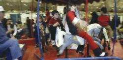 ride a merry-go-round at an Eid al-Fitr celebration 25 November, 2003,