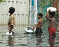 almost half of Dhaka stands drowned by the ever swelling flood