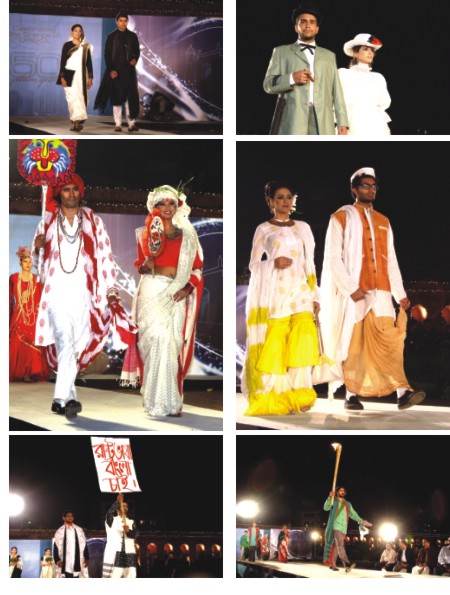 The great Lalbagh Fort was constructed in the mid 17th century by Shaista Khan, the greatest Mughal governor of Bengal, with a remarkable victory against the Arakanese, present day Myanmar. What better place to celebrate the city's 400-year birthday than this historic landmark? Organised by Dhaka Chamber of Commerce and Industry (DCCI) a light-and-sound show was arranged to great success. Next models walked down the ramp at Lalbagh Fort representing the Mughals, the British, the Khelafat Movement, the war of Liberation, and the Bengali New Year. Classical music played in the background while 80 models displayed outfits worn by people from all backgrounds during the last 400 years in Dhaka. Designers Emdad Hoque, Tootli Rahman, Kuhu and Bibi Russel brought forth their finest creations. There was also traditional Dhaka food for the guests. Our Mughal, colonial and struggles of the past came alive in an ostentatious show of colour, light and sound.