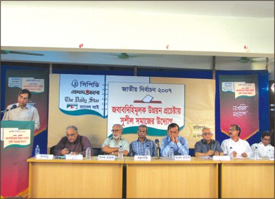 I want to say a few words about the initiative for forming citizens' committee on 20 March and its objectives and the present situation. The objective of the committee was to make the citizens aware of the political, economic and social rights. That awareness would then help in forming a government that would be accountable to the people. This government would take initiatives to change the condition of the people through a pro-development administration. We call this: How Bangladesh would look like in 2021: Vision 2021. Three things worked behind our taking the initiative. These were: the spirit and inspiration of our Liberation War; our pledge and our constitution. All the political, social and economic rights are ensured in our constitution. It is written in our constitution that Bangladesh would be a democratic state. But today democracy is being distorted. Therefore, to achieve our goals we have to ensure the voting right of every citizen and create a favourable environment to help exercise that right. We have to elect honest and competent people. But the precondition is creating a nonpartisan and acceptable electoral system. With this aim in view we have organised dialogues in the districts.